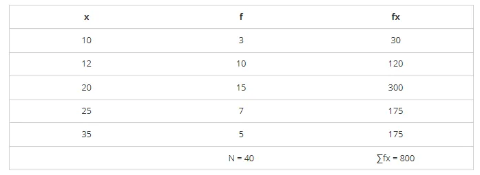 $\therefore$ Mean $\overline{\mathrm{x}}=\frac{\sum \mathrm{fx}}{\mathrm{N}}$