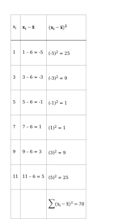 Variance, $\sigma^{2}=\frac{\sum\left(\mathrm{x}_{\mathrm{i}}-\overline{\mathrm{x}}\right)^{2}}{\mathrm{n}}$