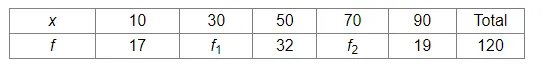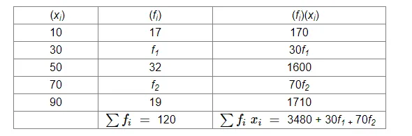 $\Rightarrow 50=\frac{3480+30 f_{1}+70 f_{2}}{120}$