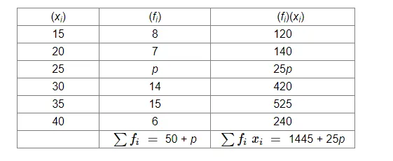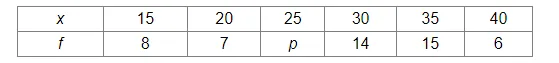 Find the missing frequency p for the following frequency distribution whose mean is 28.25.