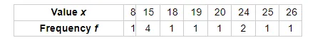 We observe that the value 15 has the maximum frequency.