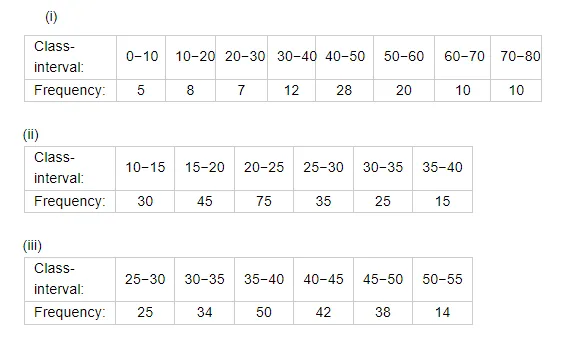 (iii) Here, maximum frequency is 50 so the modal class is 35−40.
