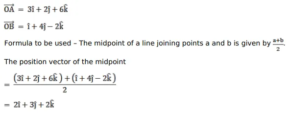 Find the position vector of the mid-point of the vector joining the points $A(3 \hat{\mathrm{i}}+2 \hat{\mathrm{j}}+6 \hat{\mathrm{k}})$ and $B(\hat{i}+4 \hat{j}-2 \hat{k})$.