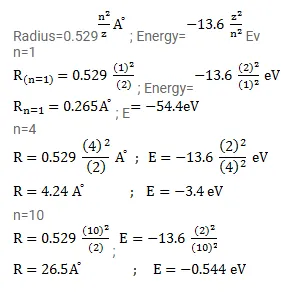 Find the radius and energy of $\mathrm{He}^{+}$ion in the state $\mathrm{n}=2$.