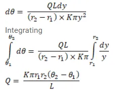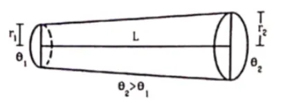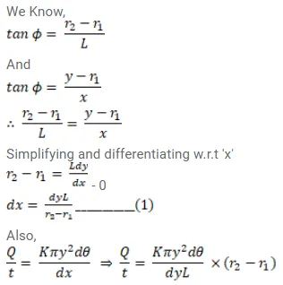 Find the rate of heat flow through a cross - section of the rod shown in figure $\left(\theta_{2}>\theta_{1}\right)$ Thermal conductivity of the material of the rod is $\mathrm{K}$.