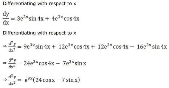 Find the second derivative of $e^{3 x} \sin 4 x$.