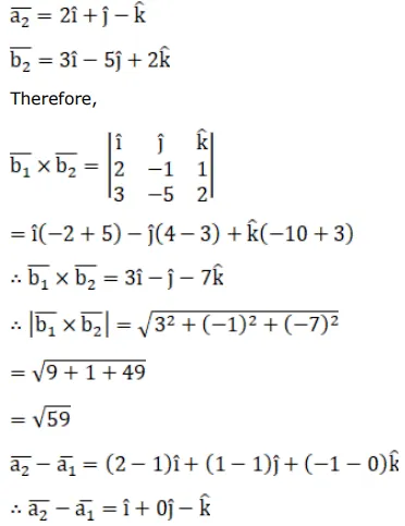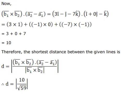 Find the shortest distance between the given lines.