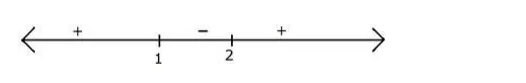 Hence $x$ should be between 1 and 2 for $(x-1)(x-2)$ to be negative