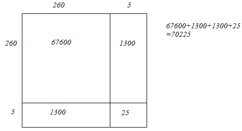 Hence, let us draw a square having side 265 units. Let us split it into 260 units and 5 units.