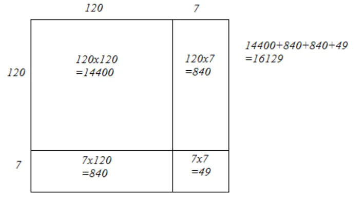 Hence, let us draw a square having side 127 units. Let us split it into 120 units and 7 units.