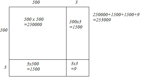 Hence, let us draw a square having side 503 units. Let us split it into 500 units and 3 units.