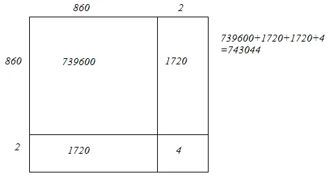 Hence, let us draw a square having side 862 units. Let us split it into 860 units and 2 units.