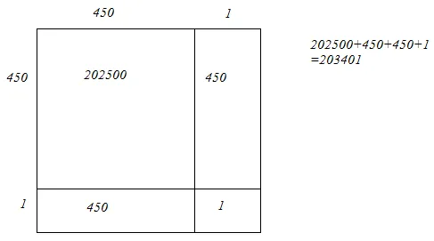 Hence, let us draw a square having side 451 units. Let us split it into 450 units and 1 units.