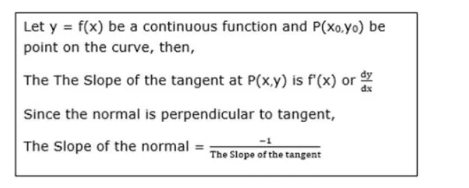 $\Rightarrow$ The Slope of the normal $=\frac{-1}{\text { The Slope of the tangent }}$