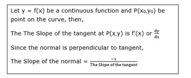 $\Rightarrow$ The Slope of the normal $=\frac{-1}{\text { The Slope of the tangent }}$
