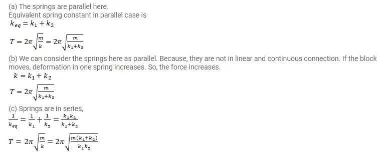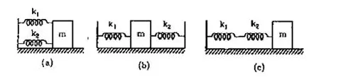 Find the time period of the oscillation of mass $\mathrm{m}$ in figures. What is the equivalent spring constant of the pair of strings in each case?