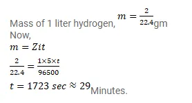 Find the time required to liberate $1.0$ liter of hydrogen at STP in an electrolytic cell by a current of $5.0$ A.