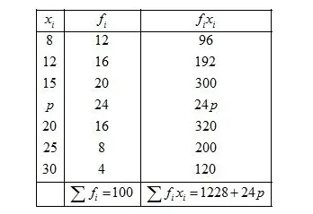 We know that mean, $\bar{X}=\frac{\sum f_{i} x_{i}}{\sum f_{i}}$