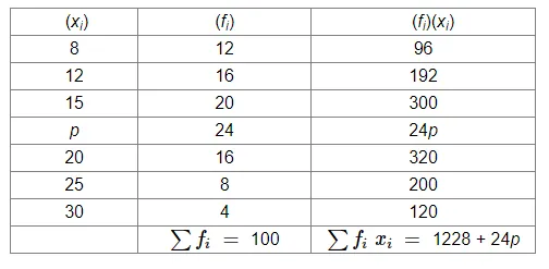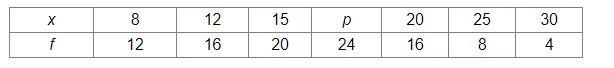 Find the value of p for the following frequency distribution whose mean is 16.6