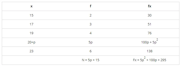 Find the value of p, if the mean of the following distribution is 20.