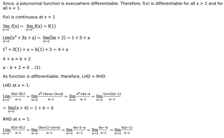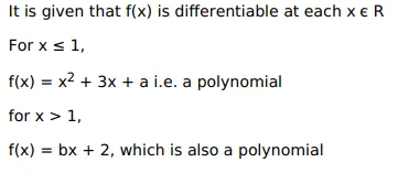 $f(x)=\left\{\begin{array}{c}\left(x^{2}+3 x+a\right), \text { when } x \leq 1 ; \\ (b x+2), \text { when } x>1\end{array}\right.$ is differentiable at each $x \in R$