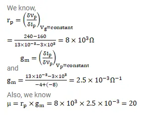 Find the values of rp, μ and gm of a triode operating at plate voltage 200V and