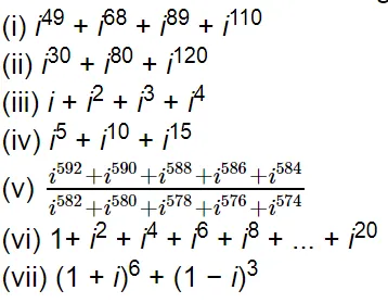 $=\left\{\left(i^{4}\right)^{1} \times i\right\}+\left\{\left(i^{4}\right)^{2} \times i^{2}\right\}+\left\{\left(i^{4}\right)^{3} \times i^{3}\right\}$