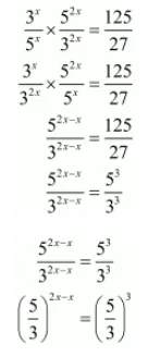 (iii) Given $\left(\frac{3}{5}\right)^{x}\left(\frac{5}{3}\right)^{2 x}=\frac{125}{27}$