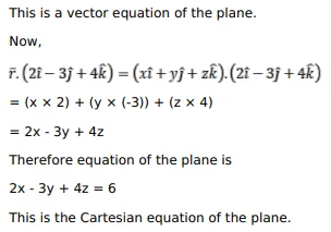 Find the vector and Cartesian equations of a plane which is at a distance of $\frac{6}{\sqrt{29}}$ from the origin and whose normal vector from the origin is $(2 \hat{i}-3 \hat{j}+4 \hat{k})$.