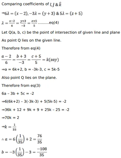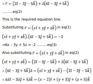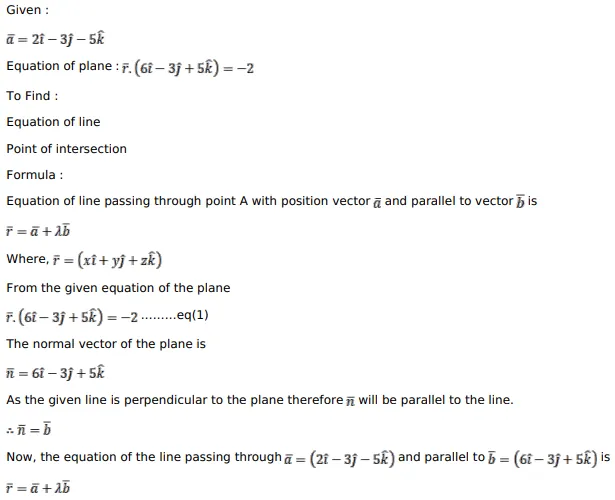 Find the vector equation of a line passing through the point $(2 \hat{i}-3 \hat{j}-5 \hat{k})$ and perpendicular to the plane $\vec{r} \cdot(6 \hat{i}-3 \hat{j}+5 \hat{k})+2-0$.