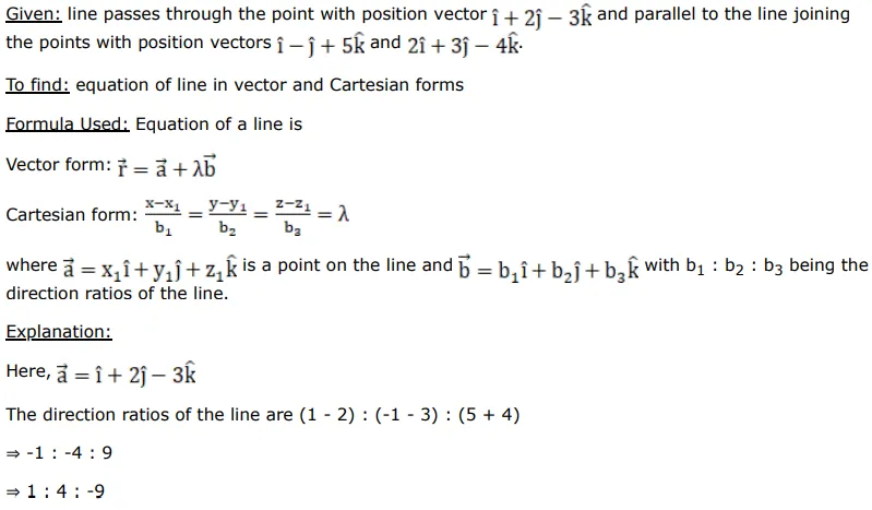 Find the vector equation of a line passing through the point having the position vector $(\hat{i}+2 \hat{j}-3 \hat{k})$ and parallel to the line joining the points with position vectors $(\hat{\mathrm{i}}-\hat{\mathrm{j}}+5 \hat{\mathrm{k}})$ and $(2 \hat{\mathrm{i}}+3 \hat{\mathrm{j}}-4 \hat{\mathrm{k}})$.