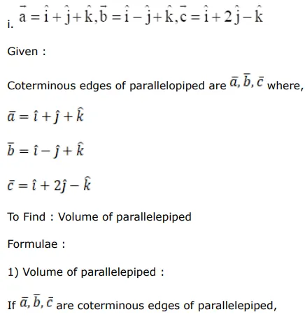 i. $\overrightarrow{\mathrm{a}}=\hat{\mathrm{i}}+\hat{\mathrm{j}}+\hat{\mathrm{k}}, \overrightarrow{\mathrm{b}}=\hat{\mathrm{i}}-\hat{\mathrm{j}}+\hat{\mathrm{k}}, \overrightarrow{\mathrm{c}}=\hat{\mathrm{i}}+2 \hat{\mathrm{j}}-\hat{\mathrm{k}}$