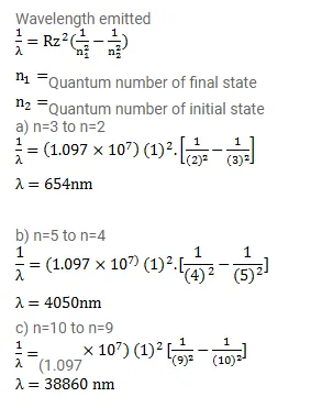 Find the wavelength of the radiation emitted by hydrogen in the transitions