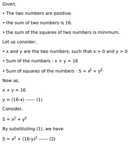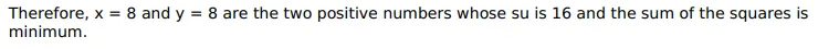 Find two positive numbers whose sum is 16 and the sum of whose squares is minimum.