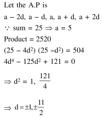 Five numbers are in A.P., whose sum is 25 and product is 2520 .