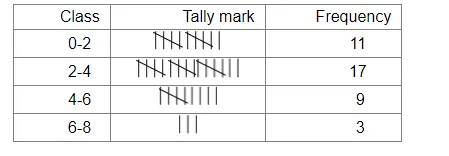 Represent it in the form of a frequency distribution, taking classes 0−2, 1−4, etc.
