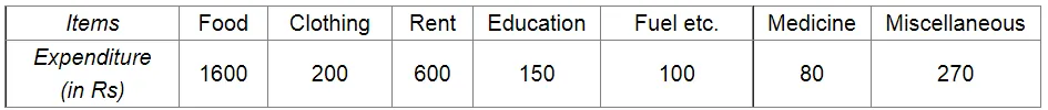 | Food | 1600 | 1600/3000 × 360 = 192 |