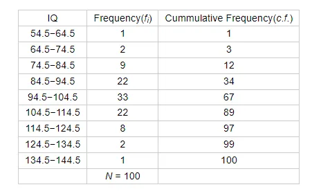 Following is the distribution of I.Q. of 100 students. Find the median I.Q.