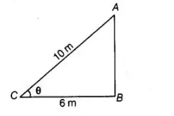 Let AB be a vertical wall and AC = 10 m is a ladder. The top of the ladder reaches to A and distance of ladder from the base of the wall BC is 6 m.