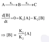 the rate of formation of B is set to be zero then the concentration of $B$ is given by :