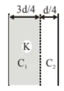$\frac{1}{C^{\prime}}=\frac{(3 \mathrm{~d} / 4)}{\epsilon_{0} \mathrm{KA}}+\frac{\mathrm{d} / 4}{\epsilon_{0} \mathrm{~A}}$