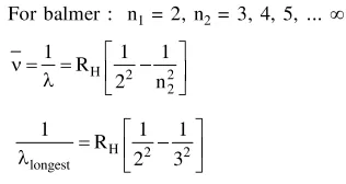 (III) The lines of longest wavelength corresponds to $\mathrm{n}_{2}=3$