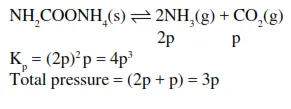 $\mathrm{NH}_{2} \mathrm{COONH}_{4}(\mathrm{~s}) \rightleftharpoons 2 \mathrm{NH}_{3}(\mathrm{~g})+\mathrm{CO}_{2}(\mathrm{~g})$