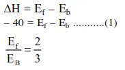 $\mathrm{E}_{\mathrm{f}}=60 \mathrm{~kJ} / \mathrm{mol} ; \mathrm{E}_{\mathrm{b}}=100 \mathrm{~kJ} / \mathrm{mol}$
