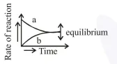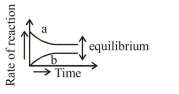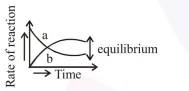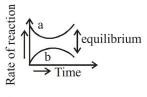 For the equilibrium $\mathrm{A} \rightleftharpoons \mathrm{B}$, the variation of the rate of the forward (a) and reverse (b) reaction with time is given by