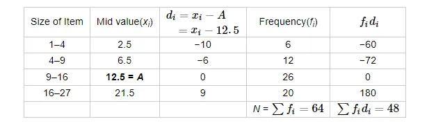 We know that mean, $\bar{X}=A+\frac{\sum f_{1} d_{1}}{\sum f_{1}}$