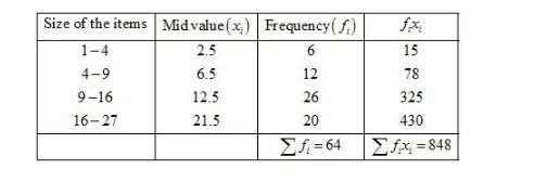 We know that mean, $\bar{X}=\frac{\sum f_{i} x_{i}}{\sum f_{i}}$