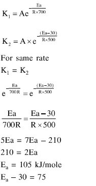 it was found that $E_{a}$ is decreased by $30 \mathrm{~kJ} / \mathrm{mol}$ in the presence of catalyst.