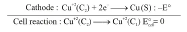 Anode : $\quad \mathrm{Cu}(\mathrm{s}) \longrightarrow \mathrm{Cu}^{+2}\left(\mathrm{C}_{1}\right)+2 \mathrm{e}^{-}: \mathrm{E}^{\circ}$