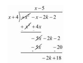 Now, we divide $f(x)=x^{2}-x-(2 k+2)$ by $g(x)=x+4$ to find the value of $k$